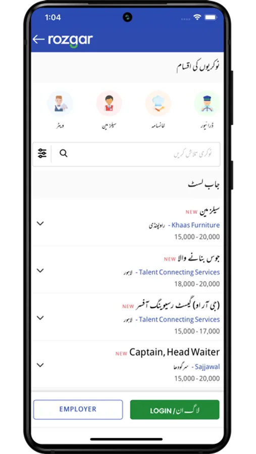 Aap chahay jo bhi naukri karna chahtay hon, jesay keh office boy, sweeper, gharailu mulazam, electrician, maali, plumber, factory mulazam, mazdoor vaghaira, asaani se Rozgar par register ho kar apnay liye munasib mulazamat dhoond saktay hain.