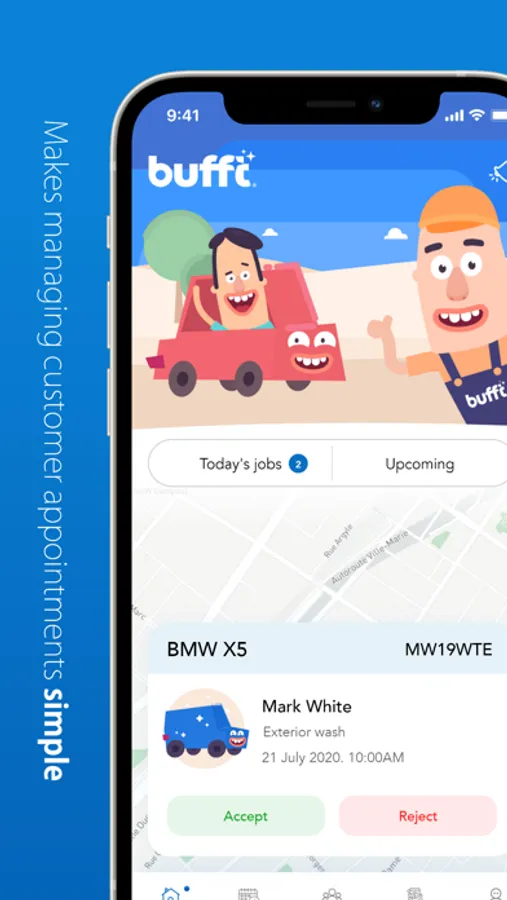 Download the Bufft app and simply tell us where you are, when you’d like your car cleaned and how often. You’ll receive a notification to say your booking has been confirmed and a local Buffer assigned. Feet up time!