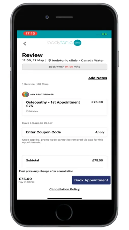 We are open seven days a week, so if it's osteopathy, massage or a beauty treatments we are sure we can help!