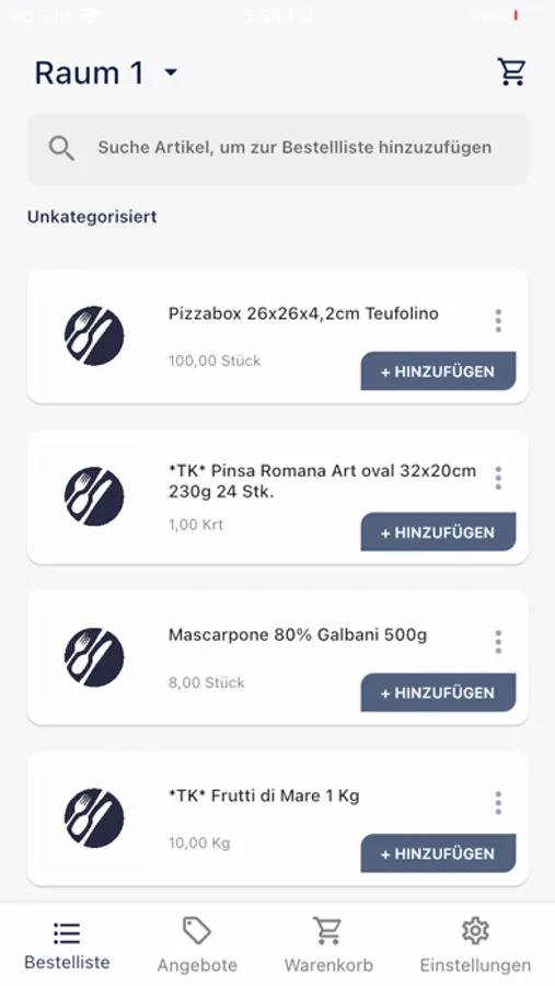 Die Bestellliste erlaubt Ihnen den Überblick über die in Ihrem Geschäft vorrätigen Artikel zu behalten. Die Artikel können in verschiedene Räume/Areale und Kategorien zugeordnet werden, damit man nicht den Überblick verliert.