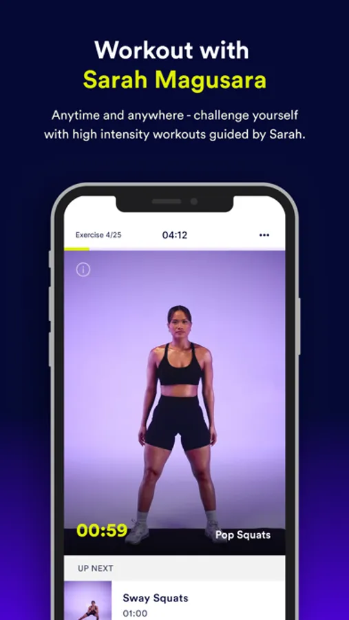 “Glow” your way — Join a challenge or do individual workouts whenever you feel like it. Pick workouts from our diverse library to train with Sarah at your convenience!
