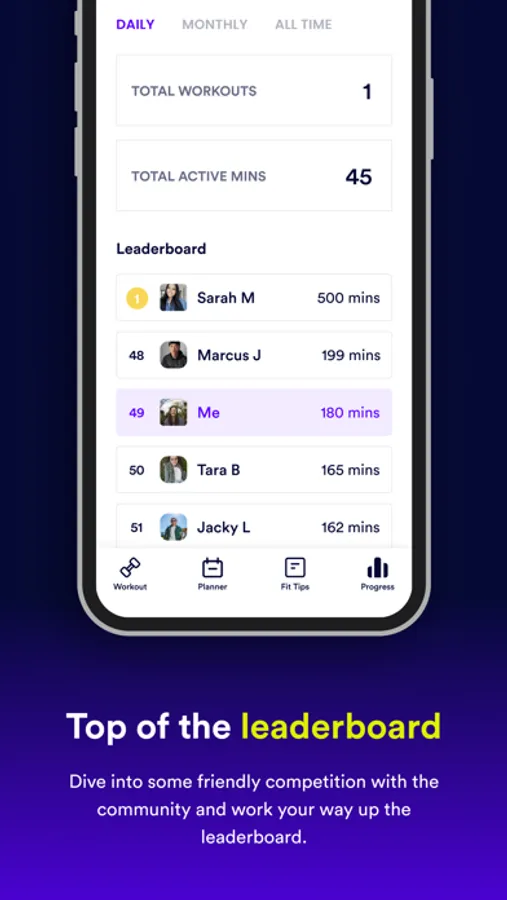 - Maintain friendly competition and see how other members are progressing on the leaderboard