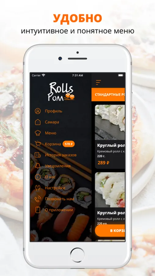 Приложение Rolls Ролл — это удобный способ заказа еды домой или в офис! Мы готовим наши блюда из качественных свежих ингредиентов и доставляем еду по Самаре быстро и бережно.