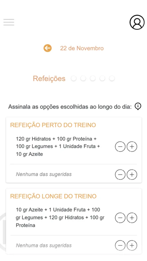 A aplicação oferece diversas funcionalidades para facilitar o acompanhamento e as recomendações feitas, por exemplo: acompanhamento do dia-a-dia e das refeições feitas, consulta dos planos alimentares, progresso, receitas, histórico de consultas e ferramentas de apoio.