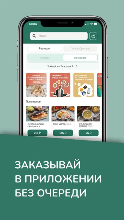 Закажи любимые блюда без очереди через приложение, а об остальном позаботимся мы, вам останется только забрать заказ из ресторана.