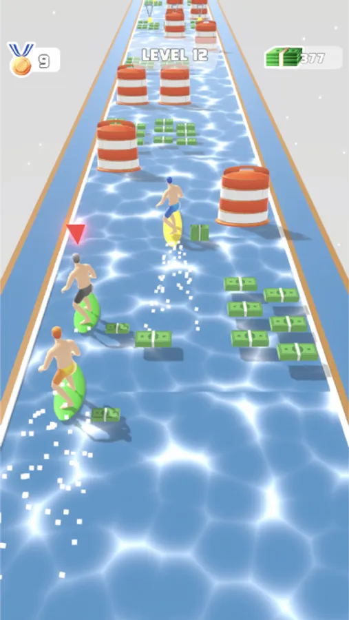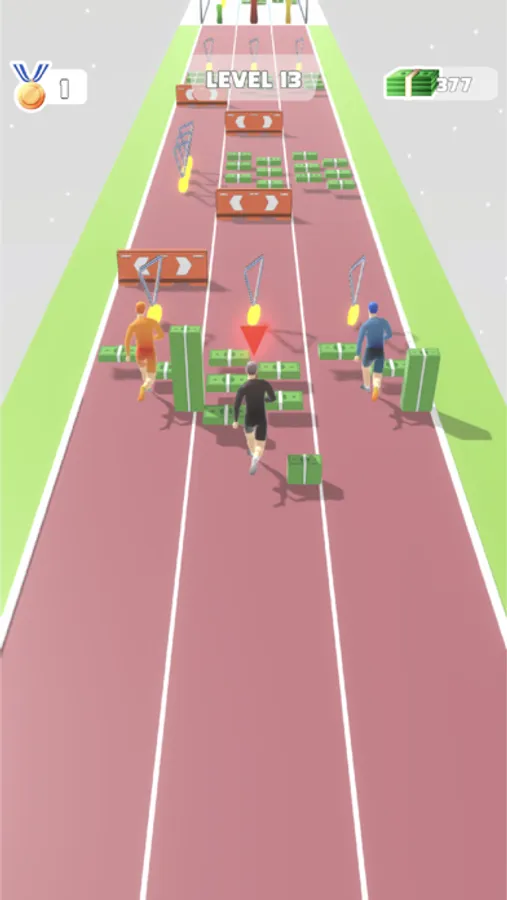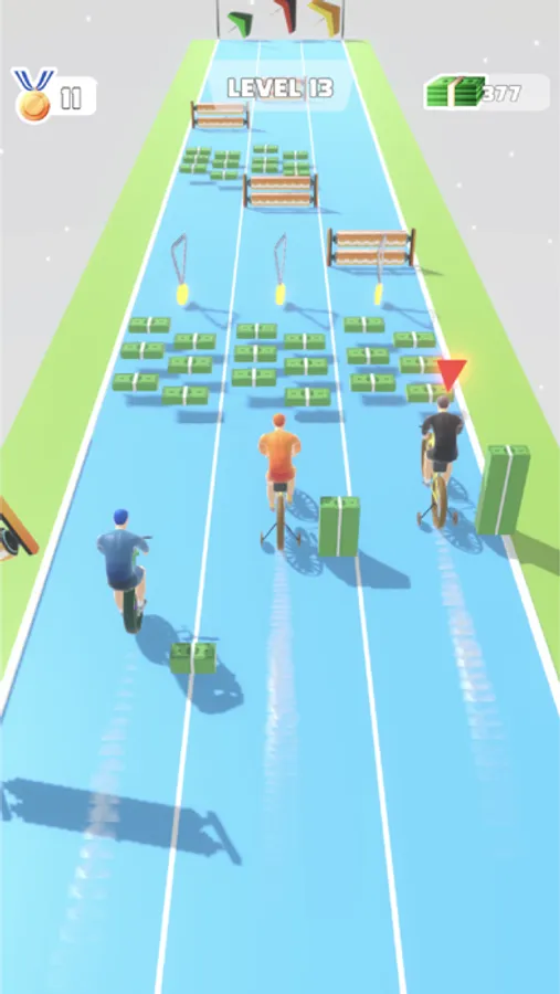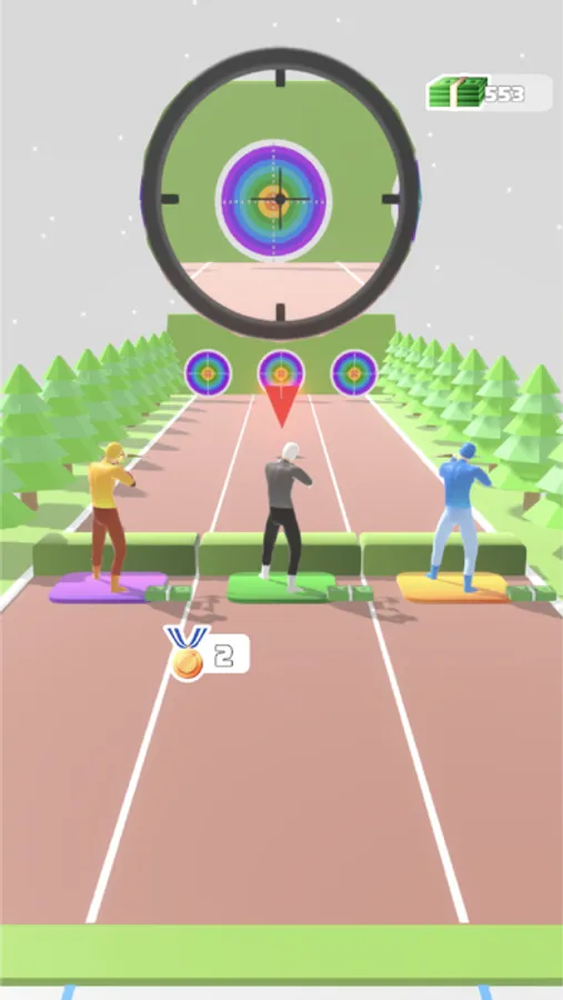 Race with your opponents, collect money to get the best equipment, aim and shoot to multiply your score!