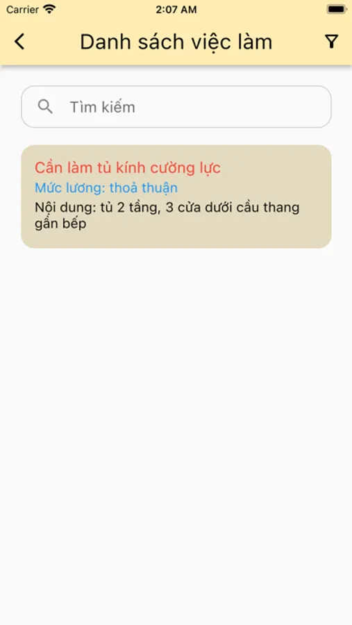Ứng dụng chứa các danh sách thợ được sắp xếp theo các ngành nghề khác nhau, số lượng thợ và nhóm thợ sẽ được cập nhật liên tục. Ứng dụng cho phép bạn tìm kiếm thợ theo vị trí, xem kinh nghiệm, hình ảnh công việc, báo giá sản phẩm,…