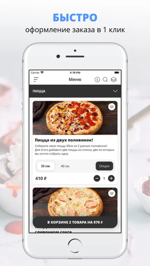 удобная корзина и быстрое оформление заказа,
