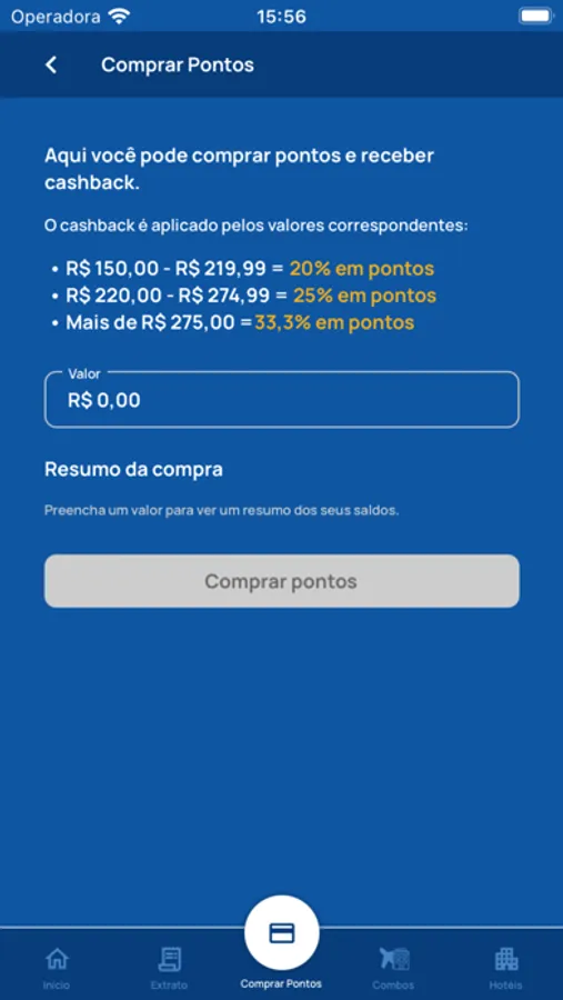 Oferecemos pontuação em todas as compra de produtos e serviços que serão disponibilizadas no aplicativo e site Value Travel.