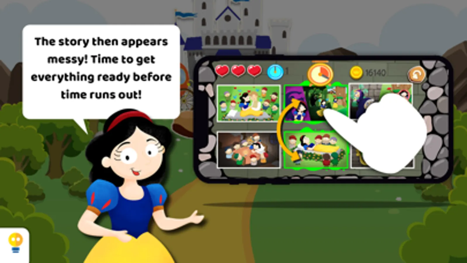 In Storygame: mystery in the kingdom of stories, we find his majesty very worried: out of nowhere, everything seems to have changed places and the characters from fables, legends and fairy tales can't remember the proper order of their stories. It's all upside down and the king has no clue what to do... his majesty needs a hand! So, can we count on you to help the king organize the kingdom and find out who's behind all of this mess?