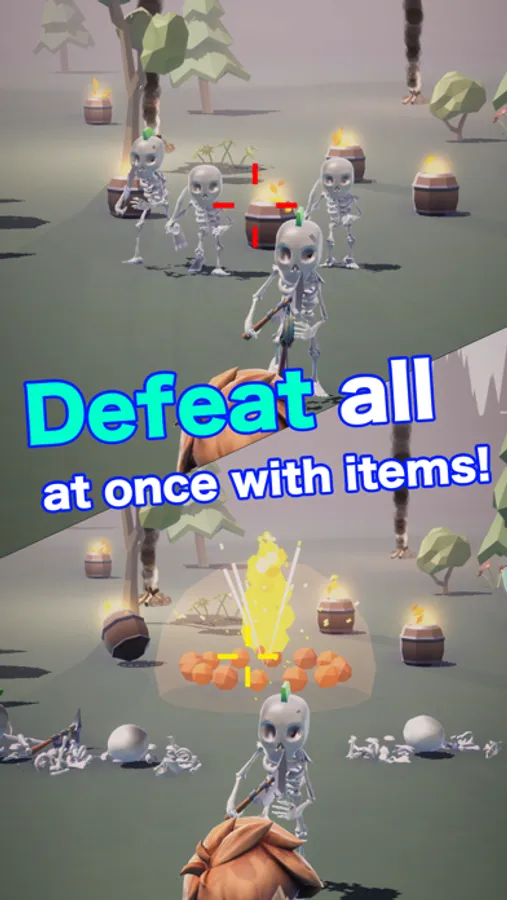 - Let's defeat the attacking skeleton with a bow and arrow!