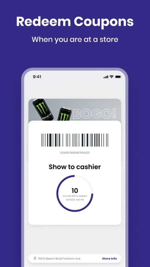 Simply tap the orange redeem button and show your phone at purchase to redeem your coupons.