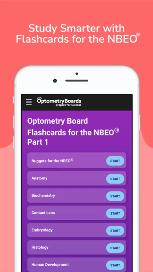 Are you taking the NBEO® Optometry Boards? Use "Optometry Boards Prep" to prepare for and pass your Optometry Boards Part 1. Here's just a few ways how you will benefit and succeed from this app and score higher on your NBEO® Part 1 Optometry Boards:
