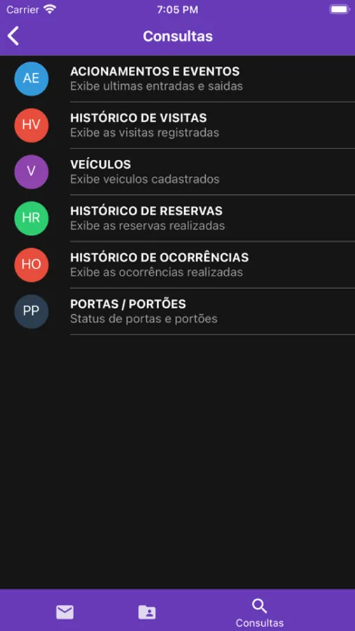- Consulta de entrada e saída. Ex: Saiba que horas seu filho chegou da escola.