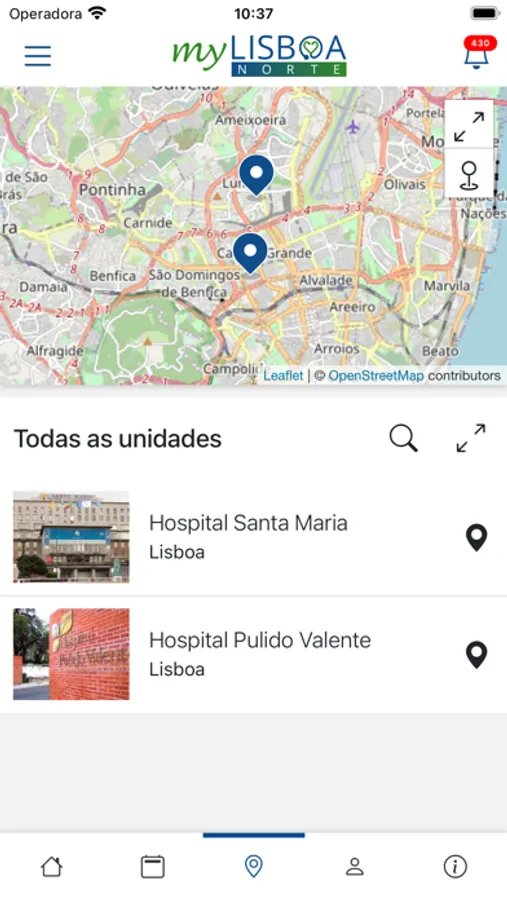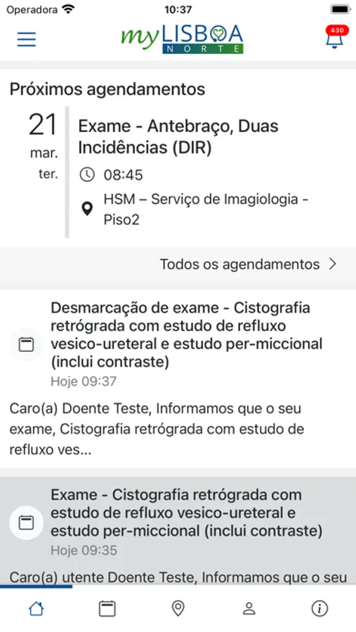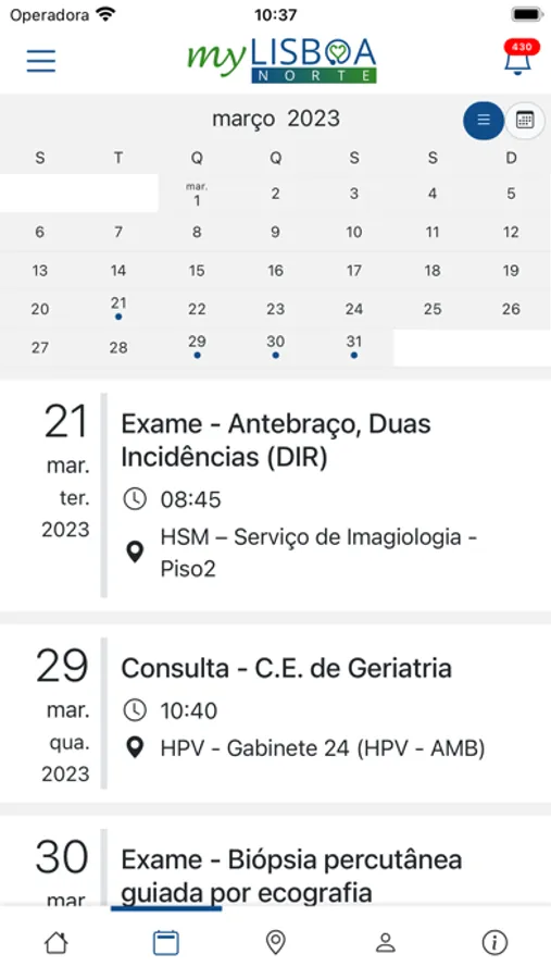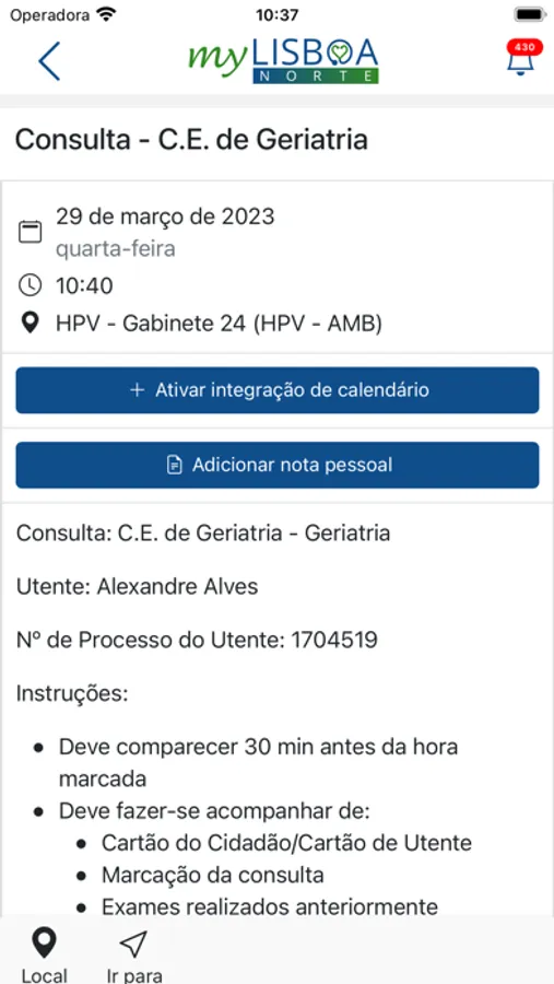 - Integração dos agendamentos com o calendário pessoal do telemóvel do utente.
