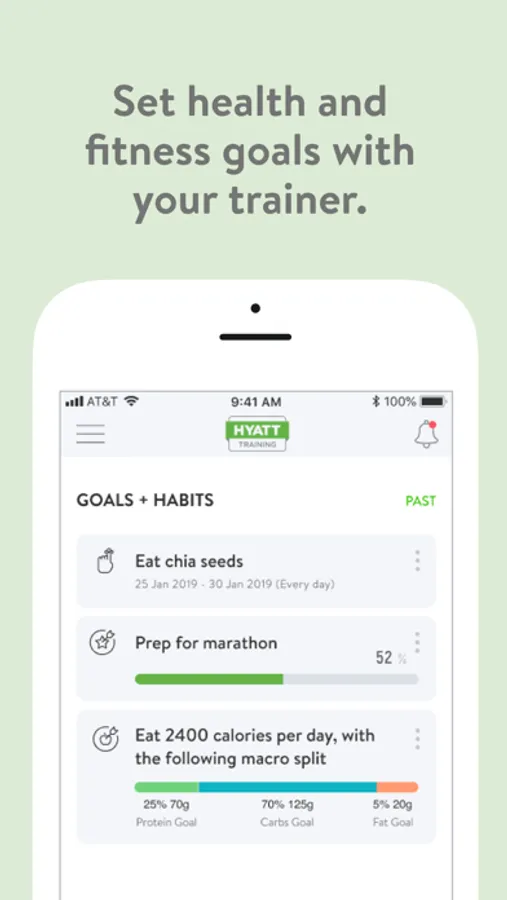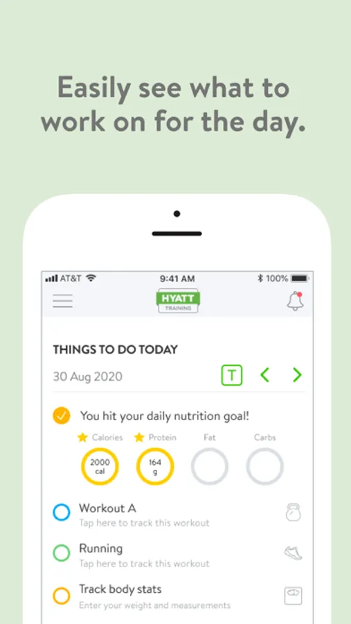 The Hyatt Training app is a customized app for Hyatt Training members. You can start tracking your workouts and meals, measuring results, and achieving your fitness goals, all with the help of your personal trainer.