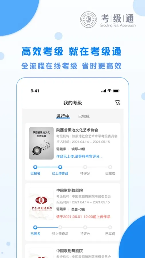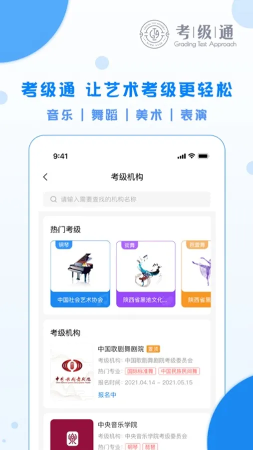 考级通是专为艺术考级用户提供全流程线上考级的服务平台。是由西安考科通级信息科技有限公司团队潜心研发的SaaS系统。全年不间断的考级场次;覆盖音乐、舞蹈、美术、表演考级全类目;全面满足不同考级需求。通过考级通系统可轻松开始一场专业艺术考级。