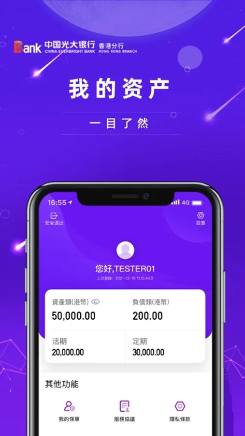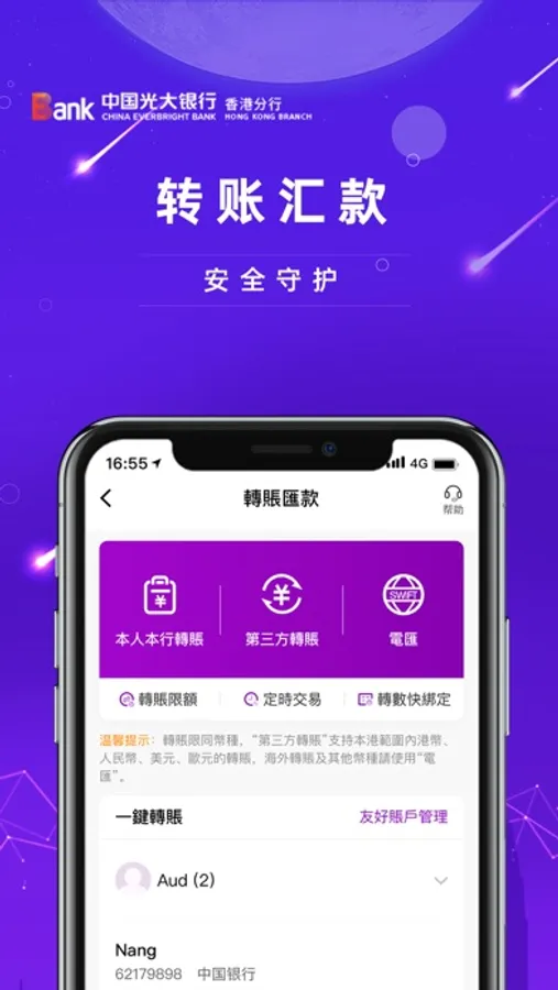 中国光大银行股份有限公司香港分行(成立于中华人民共和国的有限责任公司)(下称“本行”)以「专业、私密、尊贵及安全」的服务理念,为阁下提供个性化的综合理财服务。本行个人手机银行提供一般银行服务,版面简易清晰,让阁下不再受时间或地域限制,随时随地透过任何流动电话网络轻松处理个人财务。