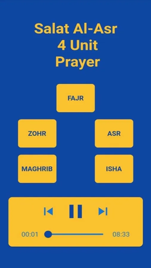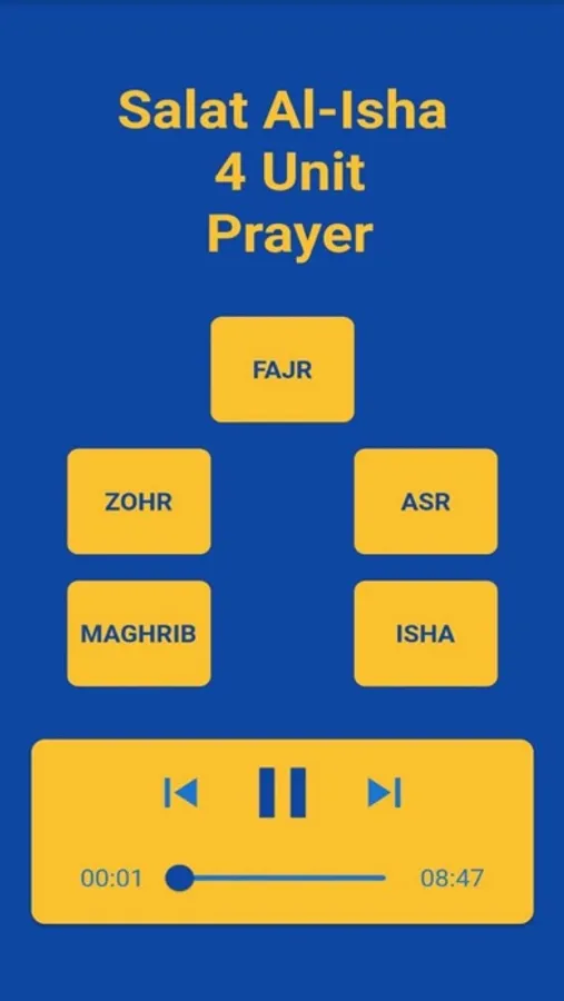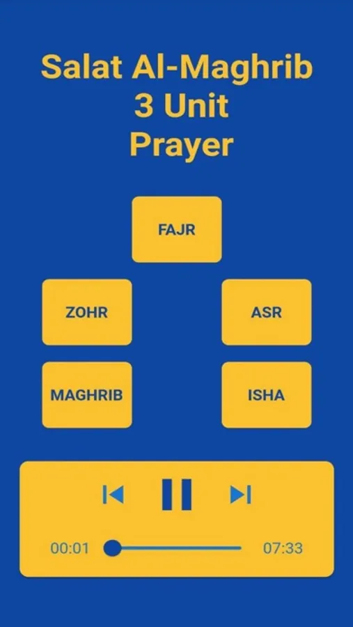 This is an Audio Namaaz (prayer) app that enables the user to listen to all 5 sahib prayers along with Niyyat (intention) and complete instructions.