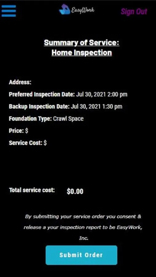 With EasyWork home owners, buyers, sellers, and agents can order their home inspection on demand whenever they need. EasyWork provides customers with an easy, transparent, and safe platform to place their service orders directly in the hands of certified professionals. EasyWork is also a fixed priced cashless app that manages the transaction from start to finish. Making it easier for owners, buyers, and sellers to care and get the most out of their property and investments