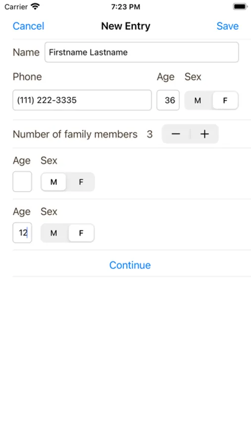 As families come to you, seeking aid, you can take their information down. You can take the address of each family, and the name, phone number, age and gender of each family member. All information is optional.