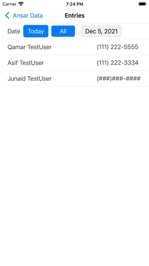 Use the "List Entries" button to list entries and search by name, phone number, or notes.