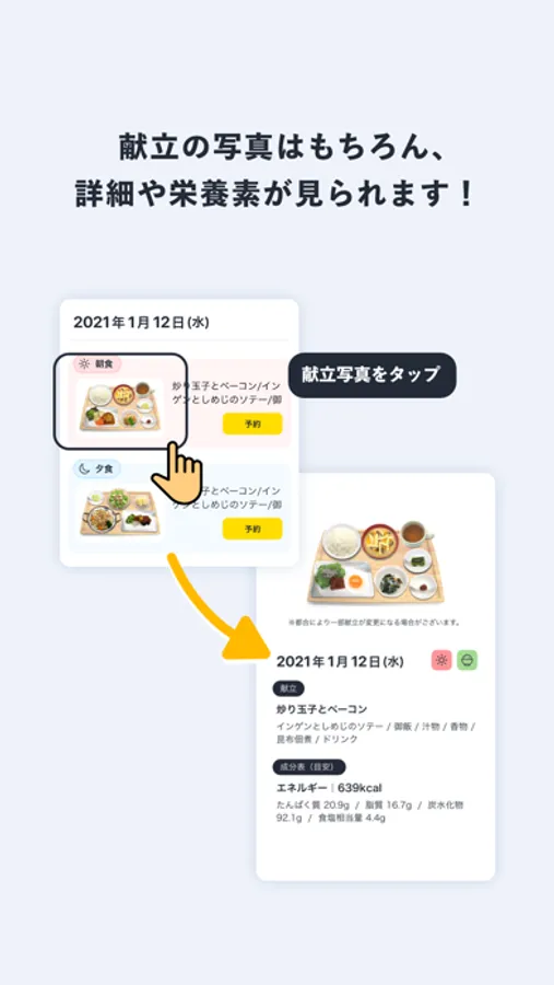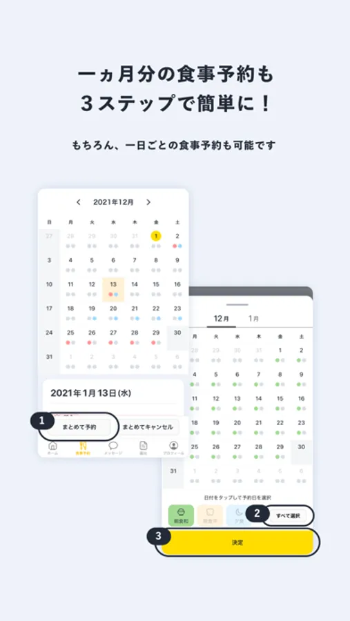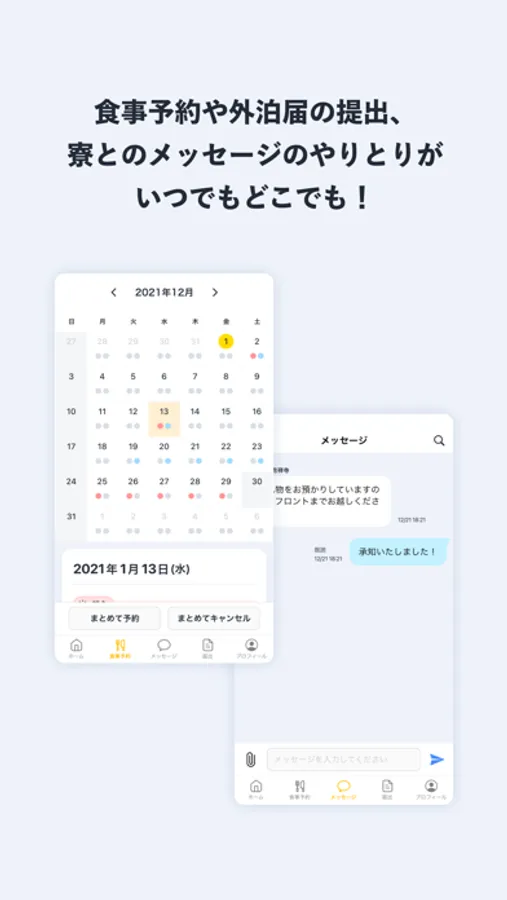 食事予約や寮とのメッセージがアプリから
