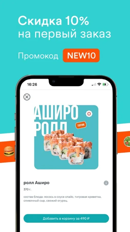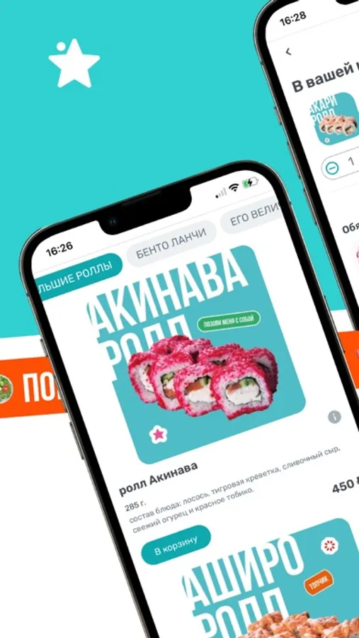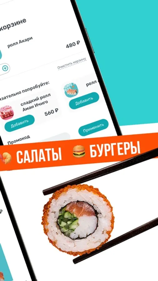 Для вас : суши, роллы, wok и бургеры.