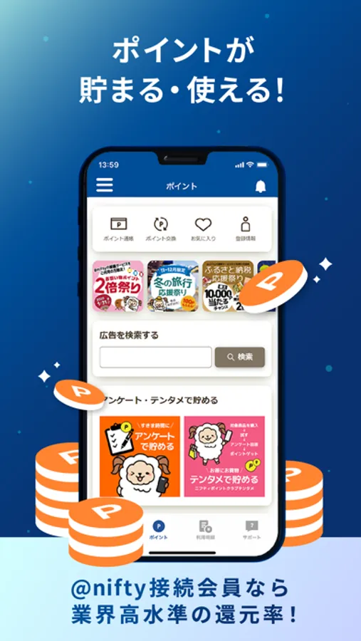 アプリからポイントが貯められる!ニフティからのお得な情報をゲット!