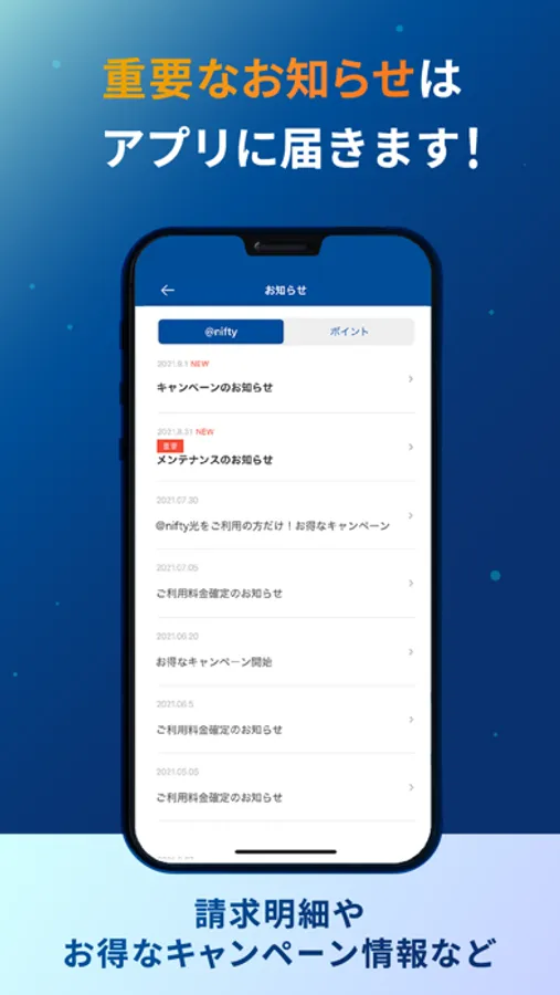 @niftyからの重要なお知らせやお得な情報も逃さずチェック!
