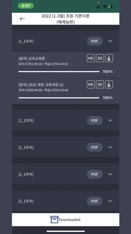 - 다운로드된 강의는 '다운로드 함'에서 재생 가능합니다.