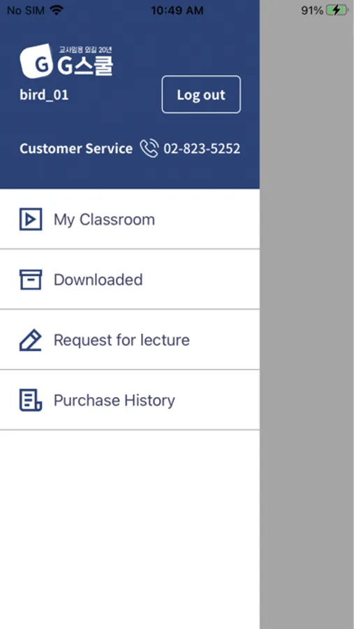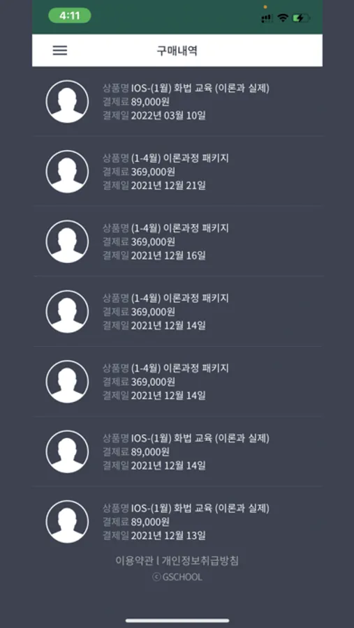 - G스쿨에서 구매 후 수강신청한 모든 강좌를 볼 수 있습니다.(단, 무료공개특강은 수강불가)