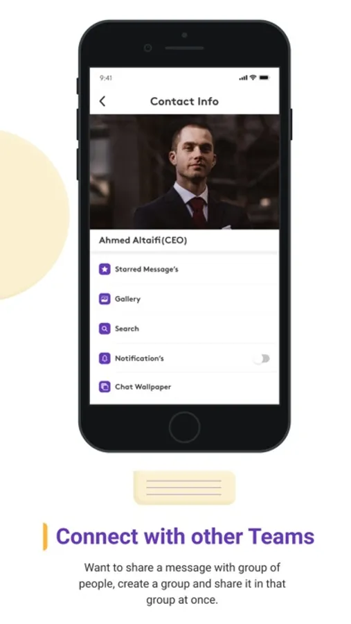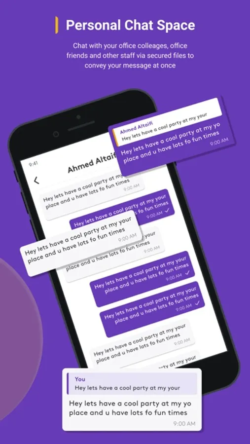 An internal communication system between organization team members that enables sending text and voice messages, sharing files and creating groups to get work done faster.