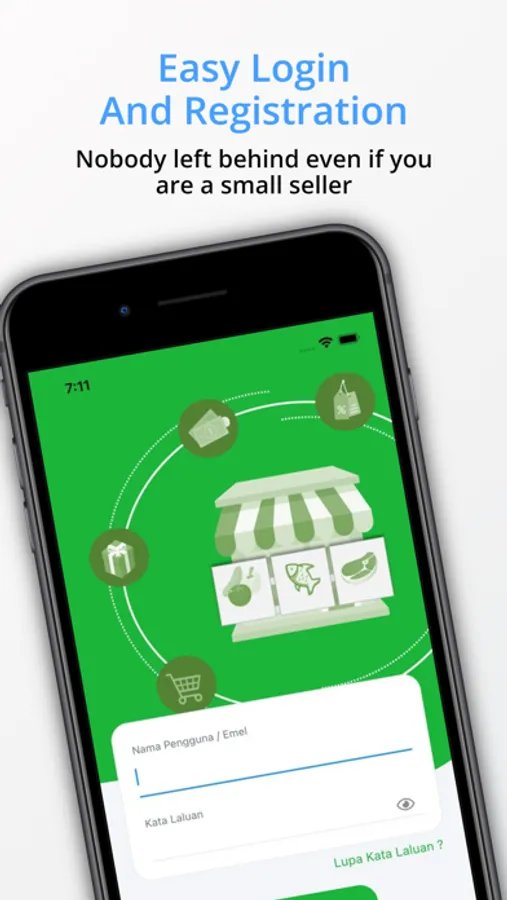 The App provides features for farmers/fishermen to register and setup e-commerce stores.