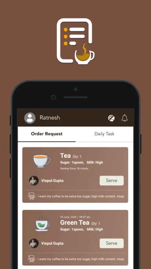 An internal orders system between organization team members that enables you to order different services inside the office.