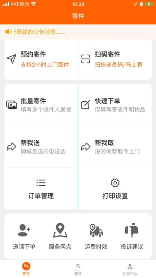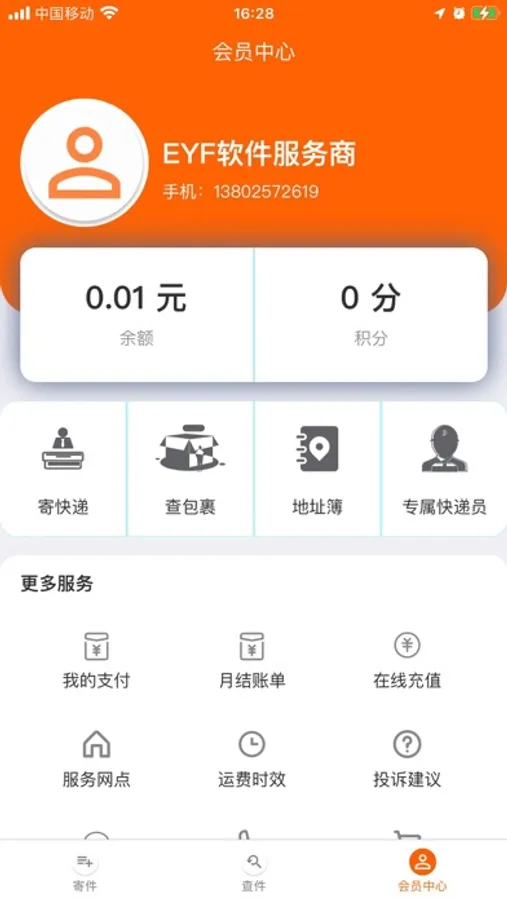 1.主要由三大功能模块构成:会员中心、寄件、查件