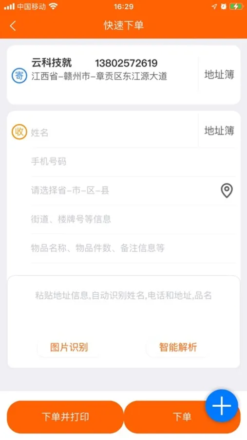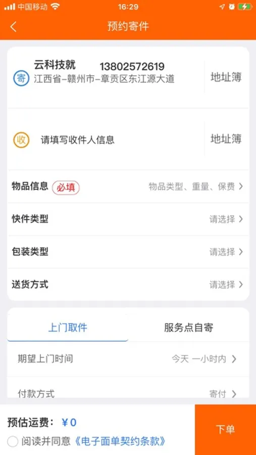 2.寄件特性:包含预约寄件、批量下单、快速下单、同城取送、批量导入、批量蓝牙打印、在线支付等