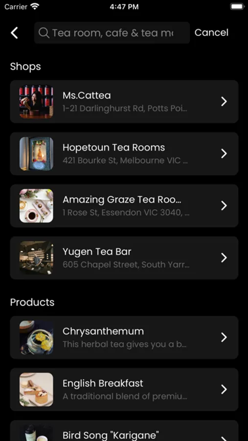 Use our app and map to find a tea place of interest in your area or search for one in a new city when you are traveling.