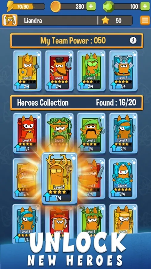 - Unlock, collect and upgrade 20 unique heroes and their unique powers