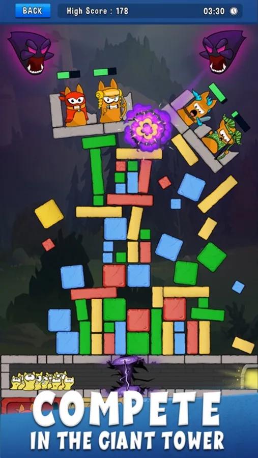 Challenge yourself and compete against other players worldwide in this multiplayer quest competition. Fight for bragging rights and collect gems in the weekly event, the Giant Tower. Match bricks in this no limit color block puzzle game mode! Master your skills of puzzles and survival and climb to the top of the leaderboard! Make friends or foes and fight for fame and glory to become the best puzzle games and tower defense RPG player!