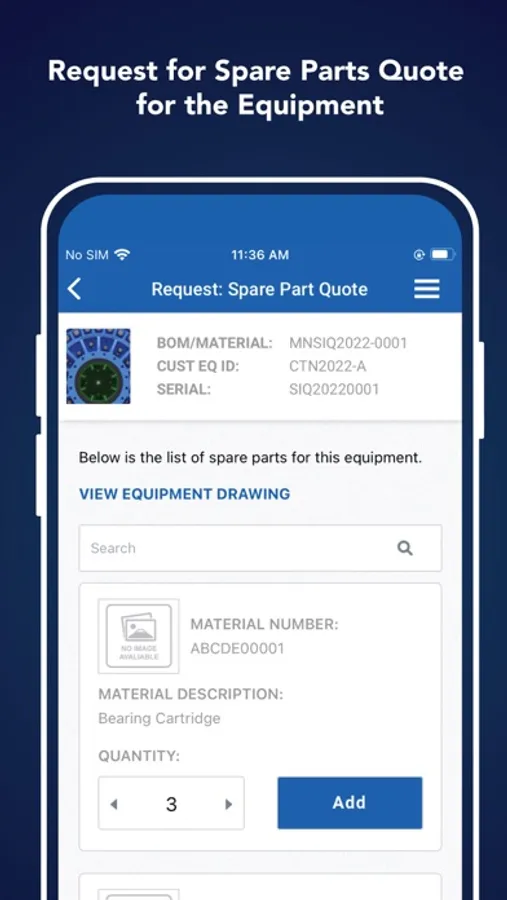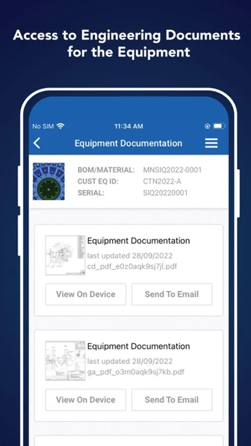 · View and download equipment documentation such as general drawings, manuals, parts list
