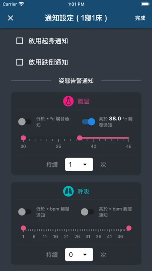 本應用為AI雲端護理站,手持裝置版本,提供以下功能