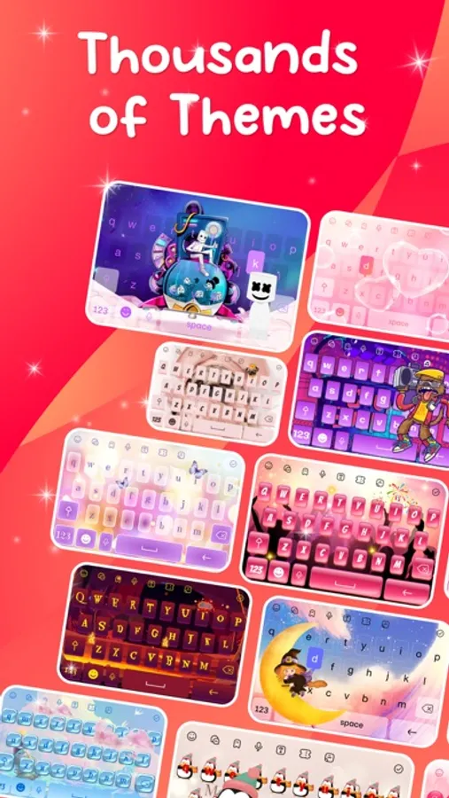 With +2000 emojis, +60 fonts, +200 keyboard themes to help you and your friends talk more lively and cheerful. Make your posts or chats on WhatsApp, Tiktok, Instagram, Messenger, Facebook, Snapchat, SMS, any apps that you are using become variously. You can create your own custom keyboard with the tools we have prepared.