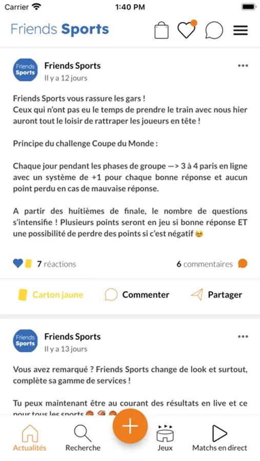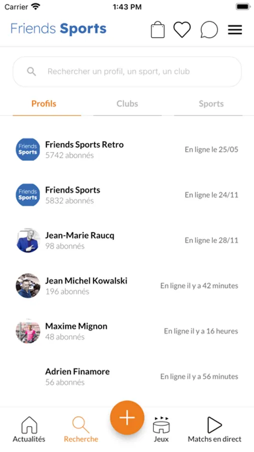 Friends Sports is a social network application that focuses mainly on sports. When registering, the user indicates the sports areas that interest him/her, as well as the users he/she wishes to follow and publications related to his/her passions are then automatically proposed.