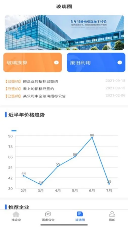 玻璃通的主要服务门窗幕墙行业,主要功能:一、找企业,平台按材料、施工、服务、业主分为四大类,二十种产品的企业分类,客户只需选择需要的产品或服务就可以查看附近的企业信息,并可以选择在线聊天、打电话、导航服务;