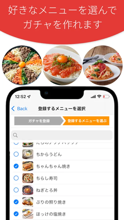 「我が家の料理」「鍋料理シリーズ」など、気分に合わせて好きなガチャを作りましょう。
