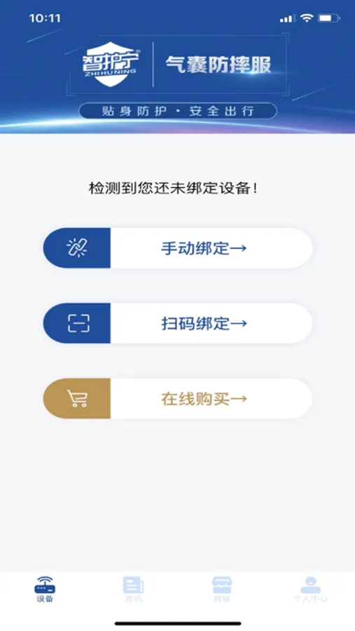 本应用主要用于智护宁智能型气囊防摔服产品的管理、操控、数据交互及资讯发布,在穿戴者跌倒并触发保护后及时向预置的亲情号发送通知及跌倒的位置信息,以便亲人能及时获取相关信息