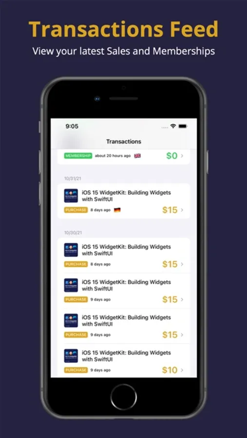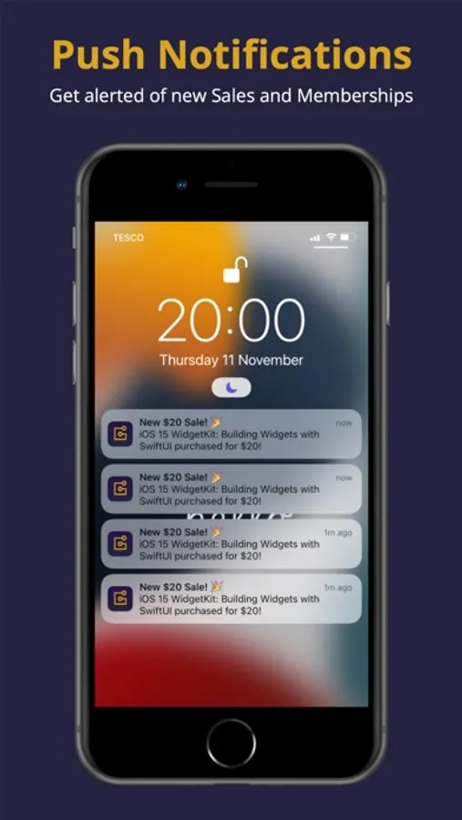 - Receive Push Notifications for real-time sales.