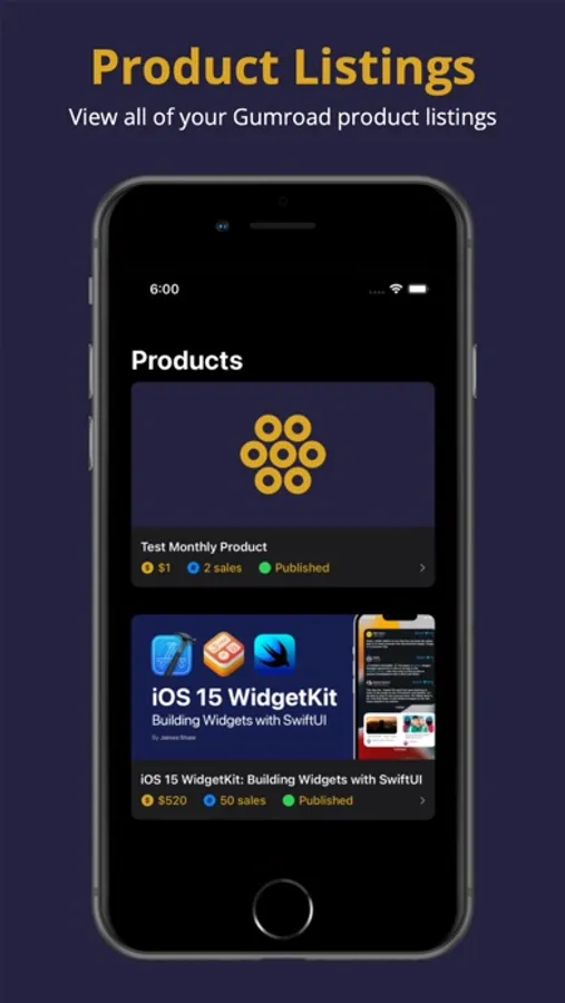 - Keep track of all your published/draft products on Gumroad.