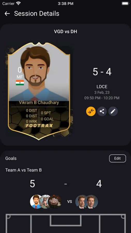• Comparison – Compare your stats with your previous performance or with Footrax community